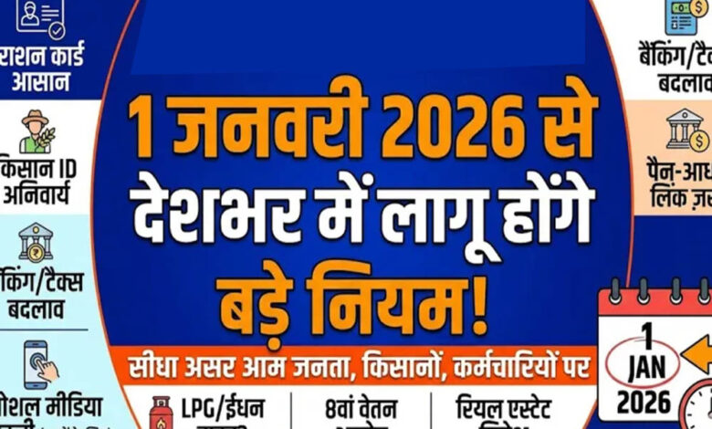 साल 2025 अब धीरे-धीरे समााप्ति की ओर बढ़ रहा है, 1 जनवरी आते ही साल 2026 की शुरुआत हो जाएगी. नए साल की शुरुआत के साथ ही कई बड़े आर्थिक नियम भी बदल रहे हैं, जो सीधे आपकी जेब को प्रभावित कर सकते हैं. 1 जनवरी से LPG गैस के दाम से लेकर पैन, आधार, नया पे कमीशन तक… ढेर सारे नियम बदल रहे हैं. आइए विस्तार से जानते हैं इन नियमों के बारे में और इसका आपके जीवन में क्या प्रभाव होने वाला है?