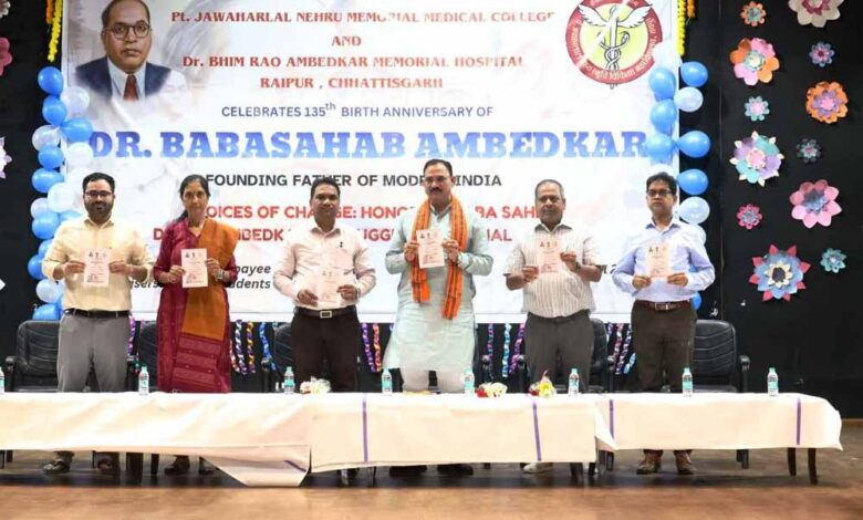 पंडित जवाहरलाल नेहरू स्मृति चिकित्सा महाविद्यालय एवं डॉ. भीमराव अम्बेडकर स्मृति चिकित्सालय, रायपुर में आज संविधान निर्माता डॉ. भीमराव अम्बेडकर की जयंती हर्षोल्लास एवं गरिमामय वातावरण में मनाई गई। इस अवसर पर आयोजित कार्यक्रम में मुख्य अतिथि के रूप में स्वास्थ्य मंत्री श्याम बिहारी जायसवाल उपस्थित रहे।