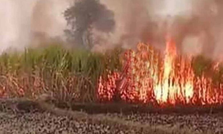 गन्ने के खेत में भीषण आग: 7 एकड़ फसल राख, ग्रामीणों ने संभाला मोर्चा