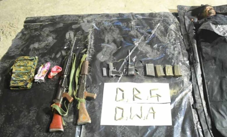 मुठभेड़ के बाद क्षेत्र की बारीकी से तलाशी लेने पर एक पुरुष सशस्त्र माओवादी का शव बरामद किया गया। साथ ही बड़ी मात्रा में हथियार और नक्सली सामग्री भी जब्त की गई। बरामद सामग्री में एक एसएलआर रायफल, एक इंसास रायफल, एक पिस्टल (मैगजीन सहित), एक वॉकी-टॉकी सेट, एसएलआर व इंसास की मैगजीन, जिंदा कारतूस, मिसफायर राउंड, खाली खोखे और अन्य सामग्री शामिल है।