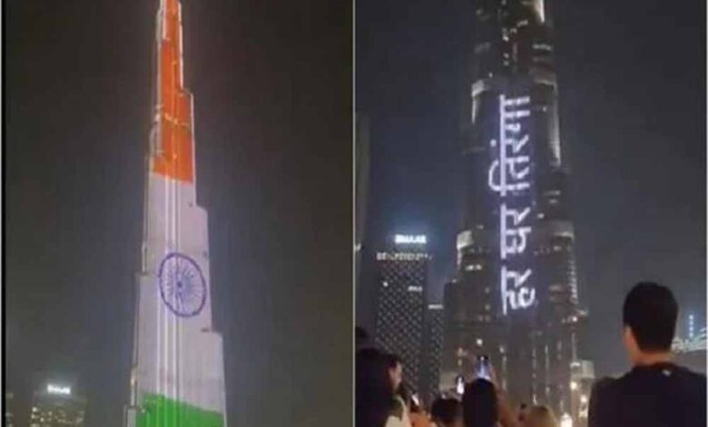 भारत की आज़ादी का जश्न दुबई में: बुर्ज खलीफ़ा तिरंगे की रोशनी से हुआ जगमग