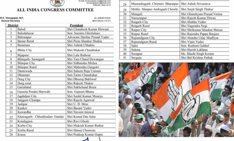 छत्तीसगढ़ कांग्रेस ने जारी की जिलाध्यक्षों की नई सूची, कई जिलों में बड़े बदलाव