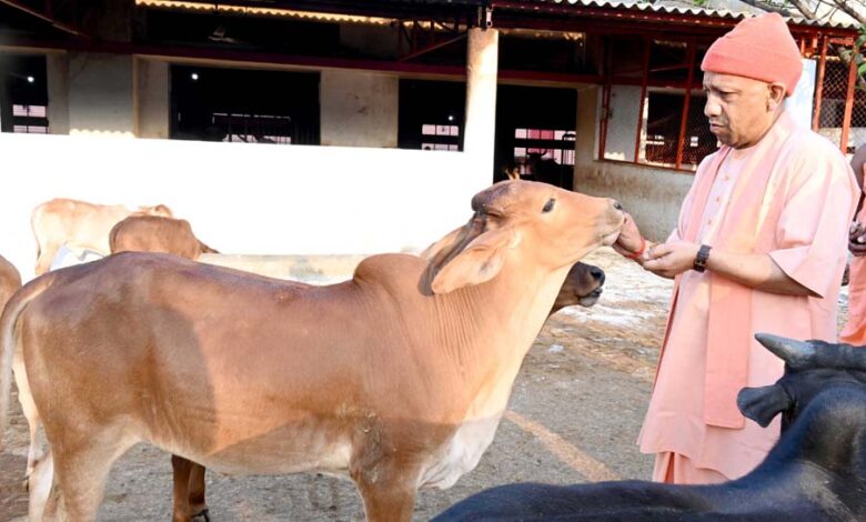 गोसेवा में रमे सीएम योगी, गोवंश को खिलाया गुड़-रोटी