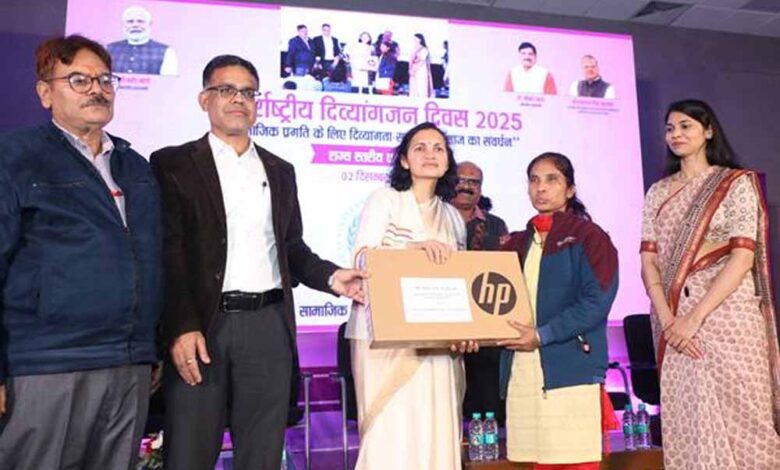 विश्व दिव्यांग दिवस के अवसर पर प्रमुख सचिव सामाजिक न्याय एवं दिव्यांगजन सशक्तिकरण श्रीमती सोनाली वायंगणकर के मुख्य आतिथ्य में संचालनालय सभागार में कार्यक्रम का आयोजन किया गया, जिसमें दिव्यांगजनों के अधिकार, समानता और सशक्तिकरण के लिए विभाग की प्रतिबद्धता को रेखांकित किया गया। इस अवसर पर आयुक्‍त नि:शक्तजन डॉ. अजय खेमरिया भी उपस्थित थे।