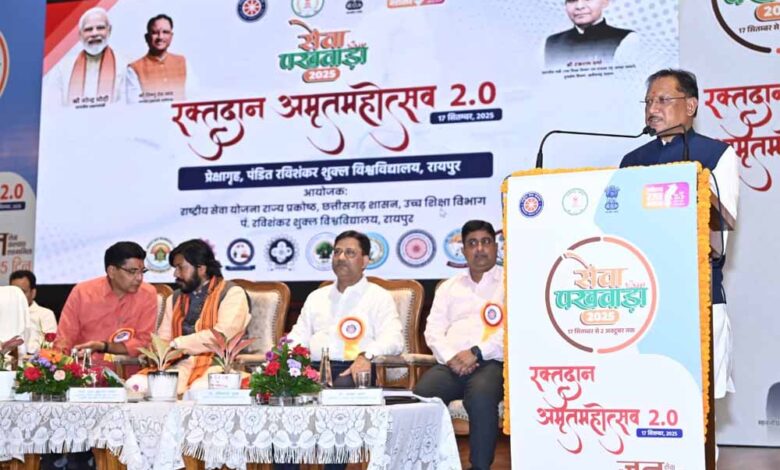 इस अवसर पर राष्ट्रीय सेवा योजना राज्य प्रकोष्ठ, उच्च शिक्षा विभाग एवं पं. रविशंकर शुक्ल विश्वविद्यालय द्वारा सेवा पखवाड़े का शुभारंभ किया गया। 17 सितम्बर से 2 अक्टूबर तक चलने वाले इस अभियान में प्रदेशभर के महाविद्यालयों में रक्तदान सहित विविध गतिविधियाँ आयोजित की जाएंगी।