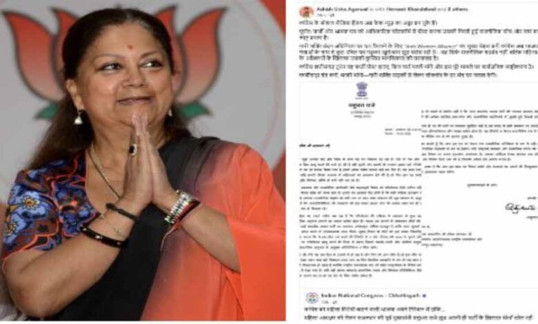 वसुंधरा राजे के नाम पर फर्जी पत्र! BJP का आरोप—छत्तीसगढ़ कांग्रेस से मांगी माफी