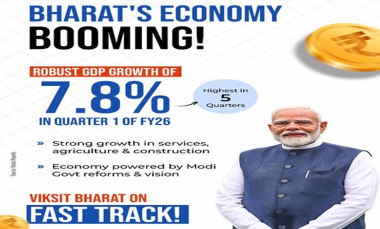 केंद्रीय मंत्रियों ने शनिवार को वित्त वर्ष 2026 की पहली तिमाही में जीडीपी की 7.4 प्रतिशत शानदार वृद्धि दर को पीएम नरेंद्र मोदी के सुधार-संचालित शासन का प्रमाण बताया। वित्त मंत्री निर्मला सीतारमण ने कहा कि वित्त वर्ष 2026 की पहली तिमाही में जीडीपी की वृद्धि दर पांच तिमाहियों में सबसे अधिक है।