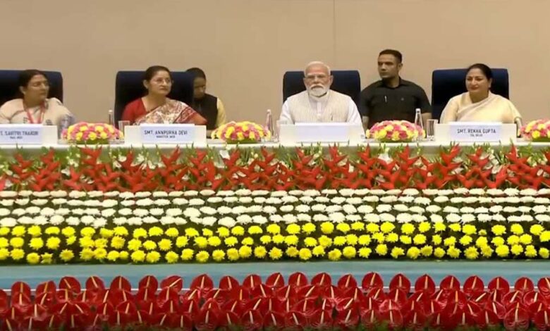 प्रधानमंत्री नरेंद्र मोदी ने सोमवार को राष्ट्रीय राजधानी के विज्ञान भवन में राष्ट्रीय स्तर के 'नारी शक्ति वंदन सम्मेलन' को संबोधित किया. सम्मेलन में सरकार, शिक्षा, विज्ञान, खेल, उद्यमिता, मीडिया, सामाजिक कार्य और संस्कृति सहित अलग-अलग क्षेत्रों की जानी-मानी हस्तियां और सफल महिलाएं शामिल हुईं ।