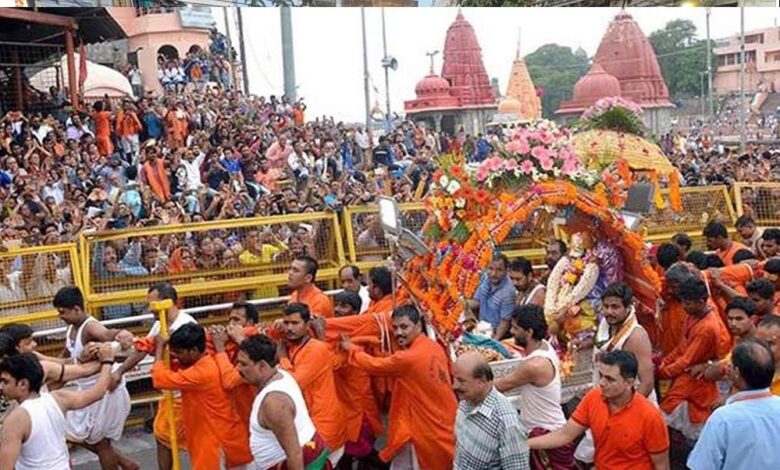 मंदिर के सभा मंडप में भगवान की पालकी का पूजन हुआ।