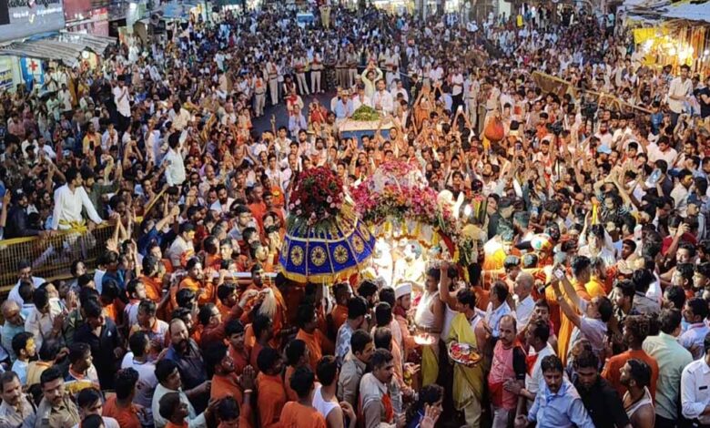 बाबा महाकाल की नगरी में आज श्री महाकालेश्वर भगवान की शाही सवारी निकाली जाएगी, जिसमें देशभर से 10 लाख श्रद्धालुओं के शामिल होने की उम्मीद है। सवारी शाम 4 बजे महाकालेश्वर मंदिर से शुरू होगी और शहर के विभिन्न मार्गों से होते हुए रात 10 बजे मंदिर परिसर में वापस आएगी। इस बार सवारी में 10 ड्रोन से पुष्पवर्षा की जाएगी। सवारी के दौरान सुरक्षा के कड़े इंतजाम किए गए हैं। इस दौरान सेल्फी लेने पर रोक रहेगी।