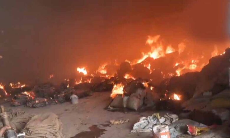 कांकेर राइस मिल में भीषण आग: लाखों का धान और बारदाना जलकर खाक