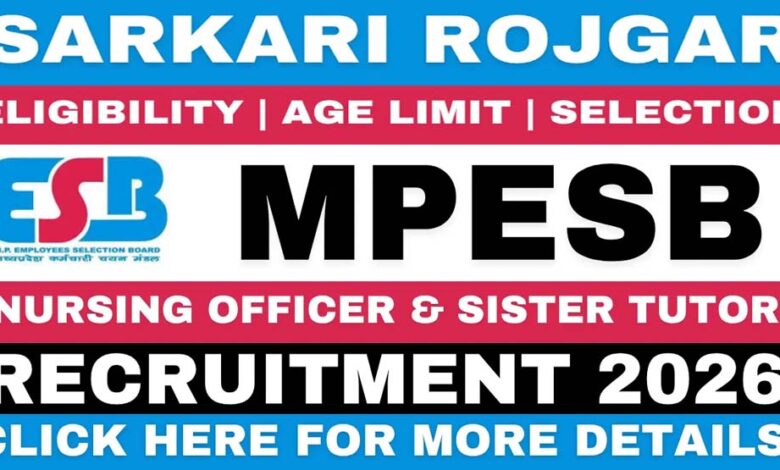 मध्य प्रदेश कर्मचारी चयन बोर्ड (MPESB) ने नर्सिंग ऑफिसर और सिस्टर ट्यूटर भर्ती 2026 के लिए अधिसूचना जारी की है। इस भर्ती के तहत कुल 2317 पद भरे जाएंगे। इच्छुक और पात्र उम्मीदवार 6 अप्रैल 2026 से आधिकारिक वेबसाइट esb.mp.gov.in पर जाकर ऑनलाइन आवेदन कर सकते हैं।