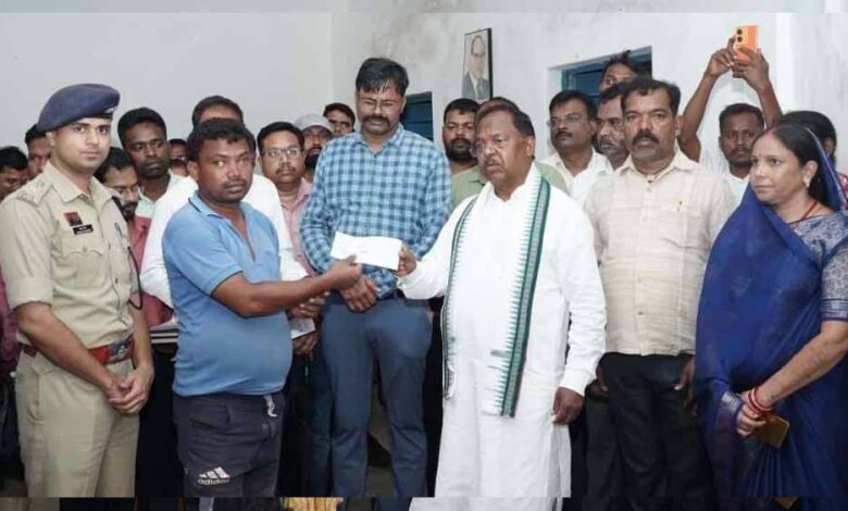 इस दौरान मंत्री नेताम के द्वारा प्रभावित परिवार देवंती, संदीप, फुलमतिया को सहयोग राशि प्रदान किया गया। साथ ही उन्होंने पशुहानि के लिए गांगरेल को 64 हजार रुपये, कन्हाई को 37,500 हजार रुपये, खिलबानुस को 32 हजार एवं फसल क्षति के लिए राजेश्वर सिंह को 8,500 रुपये, सुखदेव को 7,520 रुपये, सुरेश को 7,520 रुपये संदीप को 01 लाख रुपये, कुल 02 लाख 57 हजार 40 रुपये का मुआवजा राशि प्रदान किया।