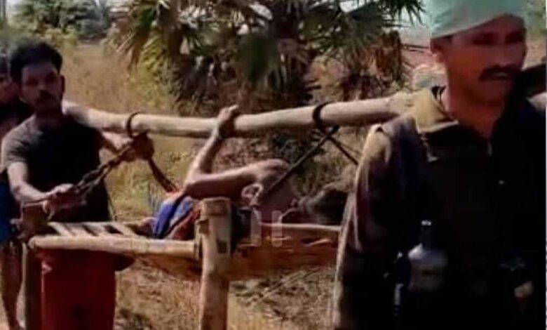 खाट पर उठाकर अस्पताल तक पहुंचाया