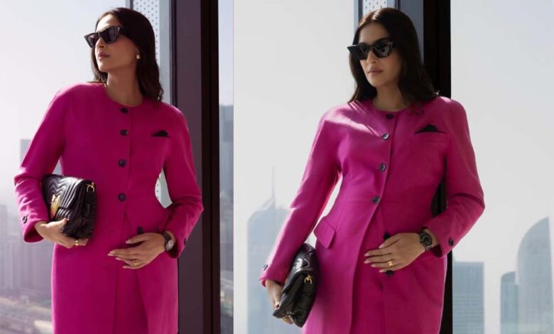 सोनम कपूर ने जो तस्वीरें शेयर की हैं उसमें देखा जा सकता है कि उन्होंने गुलाबी रंग का फॉर्मल ड्रेस पहना है। तस्वीरों में सोनम कपूर का बेबी बंप नजर आ रहा है। सोनम की इस पोस्ट को कई सेलेब्स ने लाइक किया है और उस पर कमेंट किया है।