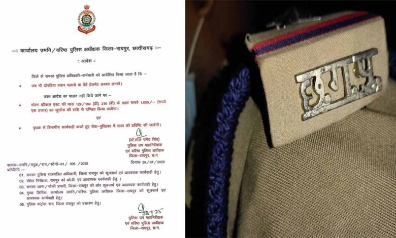 रायपुर पुलिस कर्मियों के लिए सख्त निर्देश: बिना हेलमेट दोपहिया चलाया तो कटेगा 1000 रुपए का चालान