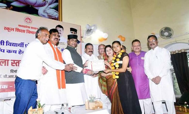 मंत्री श्री सारंग ने जिला स्तरीय कार्यक्रम में प्रतीक स्वरूप जिले के प्रतिभाशाली विद्यार्थियों को प्रमाण-पत्र देकर सम्मानित किया। इस दौरान उन्होंने बच्चों से चर्चा भी की। कार्यक्रम में विधायक डॉ. रामकिशोर दोगने, जिला पंचायत अध्यक्ष श्री गजेन्द्र शाह, उपाध्यक्ष श्री दर्शन सिंह गेहलोत, नगर पालिका अध्यक्ष श्रीमती भारती राजू कमेड़िया, उपाध्यक्ष नगर पालिका हरदा श्री अंशुल गोयल, जिला अध्यक्ष श्री राजेश वर्मा, पूर्व कृषि मंत्री श्री कमल पटेल, पूर्व विधायक श्री संजय शाह और बाल अधिकार आयोग सदस्य श्री अनुराग पाण्डे उपस्थित थे।