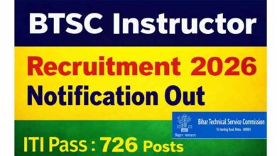 पटना बिहार तकनीकी सेवा आयोग (बीटीएससी) ने इंस्ट्रक्टर (प्रशिक्षक) के विभिन्न 726 पदों पर भर्ती के लिए एक आधिकारिक अधिसूचना…