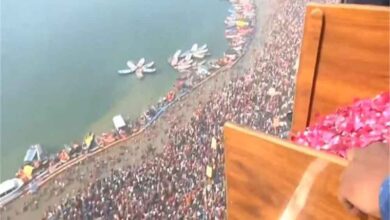 प्रयागराज उत्तर प्रदेश में प्रयागराज के माघ मेले में आज मौनी अमावस्या के स्नान पर्व पर हेलीकॉप्टर के द्वारा श्रद्धालुओं…
