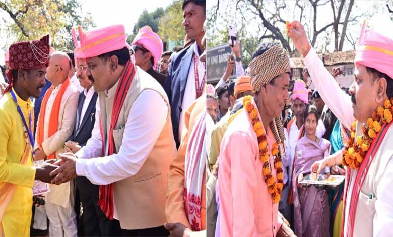 सरदार पटेल मैदान में आयोजित इस समारोह में उपमुख्यमंत्री  विजय शर्मा शामिल वधुओं के परिजन बनकर शामिल हुए। इस अवसर में उन्होंने बारात का स्वागत करने के साथ सभी को परघाते हुए समधी की तरह सभी का अभिवादन किया। वरों एवं उनके परिजनों का फूल माला के साथ स्वागत करते हुए सभी का गले लगाकर अभिनंदन किया। उन्होंने परिणय सूत्र में बंधकर नए जीवन की शुरुआत करने वाले सभी नवदंपतियों को बधाई एवं शुभकामनाएं दीं। कार्यक्रम में पंडित द्वारा वर-वधुओं को सात वचनों का संकल्प दिलाया गया, जिसके साथ ही विवाह की रस्में संपन्न हुईं। उपमुख्यमंत्री  शर्मा ने मंच पर पहुंचकर सभी नवदंपतियों को आशीर्वाद प्रदान किया और शासन की ओर से प्रत्येक जोड़े को 35-35 हजार रुपये की सहायता राशि का चेक और सामग्री भेंट किया।