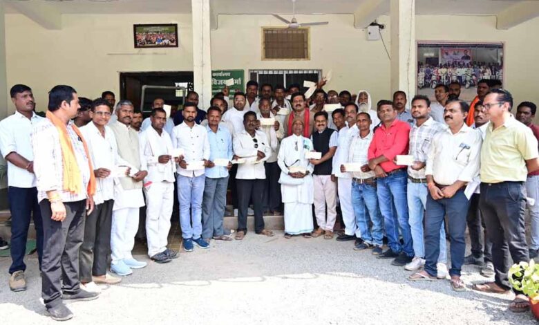 उप मुख्यमंत्री एवं कवर्धा विधायक  विजय शर्मा ने आज कवर्धा स्थित विधायक कार्यालय में 17 कबीर कुटियों को भजन, सत्संग, कीर्तन एवं अन्य धार्मिक आयोजनों के लिए प्रत्येक कबीर कुटी को 25-25 हजार रुपए की मान से कुल 4 लाख 25 हजार रुपए की राशि का चेक वितरित किया। कबीरपंथ से जुड़ी धार्मिक एवं सांस्कृतिक गतिविधियों को सुदृढ़ बनाने के उद्देश्य से जनसंपर्क मद से वाद्ययंत्रों के खरीदी के लिए यह स्वीकृत किया गया। उप मुख्यमंत्री  शर्मा द्वारा स्वीकृत यह राशि संबंधित कबीर कुटियों को आज प्रदान की गई, जिससे वहां नियमित रूप से आयोजित होने वाले भजन, सत्संग, कीर्तन एवं अन्य आध्यात्मिक कार्यक्रमों के लिए आवश्यक वाद्य सामग्री उपलब्ध कराई जा सकेगी।