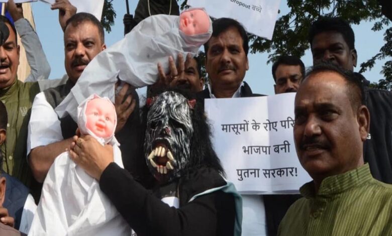 मध्य प्रदेश विधानसभा शीतकालीन सत्र शुरू, कांग्रेस विधायकों ने कफ सिरप मौतों के विरोध में बच्चों के पुतले और ‘पूतना’ के साथ किया प्रदर्शन