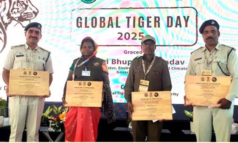 केन्द्रीय वन एवं पर्यावरण मंत्री भूपेन्द्र यादव ने अंतर्राष्ट्रीय बाघ दिवस के अवसर पर दिल्ली में आयोजित समारोह में उत्कृष्ट कार्य करने वाले मध्यप्रदेश टाइगर रिजर्व के वनकर्मियों को सम्मानित किया। इनमें सतपुड़ा टाइगर रिजर्व के फॉरेस्ट गार्ड राजेश पटेल, कान्हा टाइगर रिजर्व के स्थायी कर्मी सुखमान कुशरे एवं फॉरेस्ट गार्ड बसंत लाल मरावी एवं पेंच टाइगर रिजर्व की फॉरेस्ट वॉचर श्रीमती झुन्नी बाई शामिल हैं।